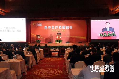 中國(guó)國(guó)民黨榮譽(yù)主席連戰(zhàn)在“兩岸合作發(fā)展論壇”上致辭。(圖片來(lái)源:山東省臺(tái)辦)