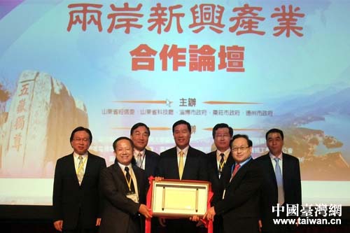 山東省副省長(zhǎng)夏耕等在臺(tái)中出席兩岸新興產(chǎn)業(yè)合作論壇。(圖片來(lái)源:山東省臺(tái)辦)