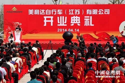 臺灣美利達(dá)自行車集團(tuán)投資的中高檔自行車項(xiàng)目開業(yè)慶典現(xiàn)場。(圖片來源:南通市臺辦)