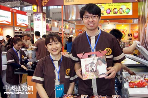 擬來(lái)濟(jì)南參展的臺(tái)灣海瑞貢丸董事長(zhǎng)黃世凱和太太陳奕璇在貴陽(yáng)展。(圖片來(lái)源:山東省臺(tái)辦)