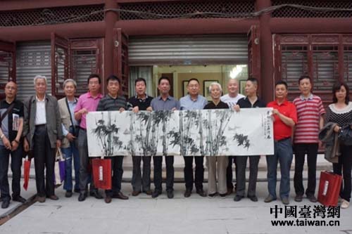 德陽(yáng)市臺(tái)聯(lián)與眉山市臺(tái)聯(lián)書畫交流合影。(圖片來(lái)源:德陽(yáng)市臺(tái)辦)