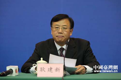濟(jì)南市政府副秘書(shū)長(zhǎng)耿建新介紹2014山東(濟(jì)南)臺(tái)灣名品博覽會(huì)籌備情況。(圖片來(lái)源:山東省臺(tái)辦)
