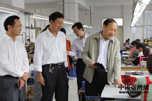 史東林參觀湯陰金鐘皮具廠生產(chǎn)車間。(圖片來(lái)源:安陽(yáng)市臺(tái)辦)