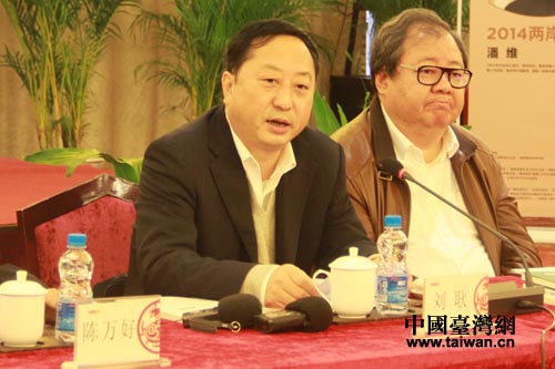 海南省臺(tái)辦主任劉耿在會(huì)兩岸詩(shī)會(huì)高端論壇上講話。(中國(guó)臺(tái)灣網(wǎng) 雍紫薇 攝)