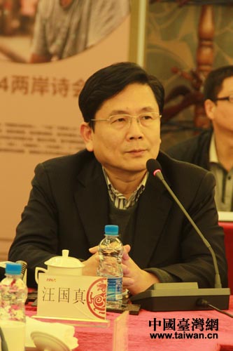 著名詩(shī)人汪國(guó)真在兩岸詩(shī)會(huì)高端論壇上講話。(中國(guó)臺(tái)灣網(wǎng) 雍紫薇 攝)