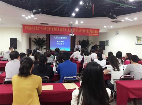 中國臺灣網(wǎng)5月29日蘇州訊 5月27日下午,蘇州臺協(xié)舉辦臺協(xié)大講堂之十八——華東臺商子女學!芭_灣高中升大學之學測考試與運用”——兩岸大學任我行說明會。特邀華東臺商子女學校副校長鄭京榮,為臺協(xié)會員舉辦一場學測說明會。蘇州臺協(xié)執(zhí)行秘書長杜進昌親臨現(xiàn)場并致辭。