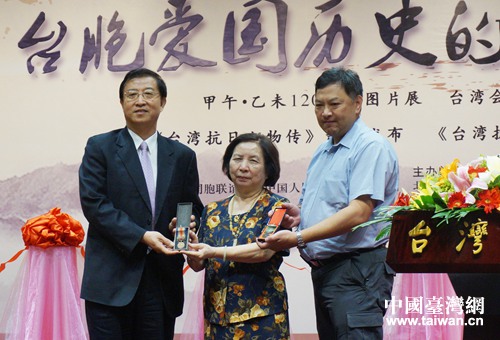 開幕式上,臺灣抗日志士親屬協(xié)進會還特別向北京臺灣會館贈送了珍貴的抗日文物。北京市臺聯(lián)黨組書記王蘭棟代表主辦方向臺灣抗日志士親屬協(xié)進會表示感謝并頒發(fā)了收藏證書。
