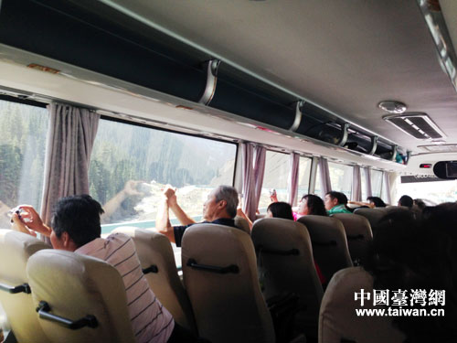 團(tuán)員們?cè)谲嚿涎赝九臄z果子溝大橋。(中國(guó)臺(tái)灣網(wǎng) 馬一娜 攝)