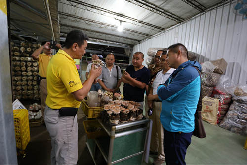 廣元市昭化區(qū)現(xiàn)代農(nóng)業(yè)考察團(tuán)一行在臺中市啊亮香菇園考察交流