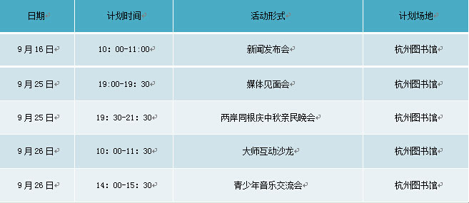 注:9月16日-10月8日在杭州圖書館每天進行相關(guān)主題音樂展覽