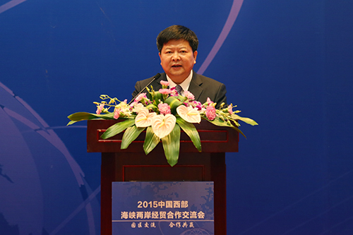中國臺灣網(wǎng)9月23日四川訊 9月22日上午,2015中國西部海峽兩岸經(jīng)貿(mào)合作交流會在四川舉行,國務(wù)院臺辦副主任龍明彪,四川省政府副省長甘霖,四川省政協(xié)副主席楊興平,中國國民黨前副主席、臺中市前市長、臺灣旺旺集團副董事長胡志強、全國臺企聯(lián)榮譽會長丁鯤華等出席交流會。臺灣知名產(chǎn)業(yè)園區(qū)負(fù)責(zé)人、專家學(xué)者、全國臺企聯(lián)及大陸部分臺資企業(yè)代表,大陸各地和島內(nèi)的青年臺商,四川省級有關(guān)部門負(fù)責(zé)人,重慶、云南、陜西等西部省市臺辦、涉臺園區(qū)的代表,四川各地園區(qū)、企業(yè)有關(guān)負(fù)責(zé)人等共計300余人參加會議。