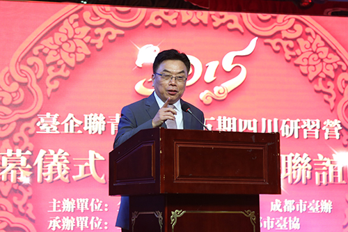 中國臺灣網(wǎng)9月24日四川訊 9月22日,由全國臺企聯(lián)和四川省臺辦、成都市臺辦主辦的“2015全國臺企聯(lián)青年團四川研習(xí)營”在成都舉行閉營儀式暨川臺青年聯(lián)誼活動,國臺辦副主任龍明彪,四川省臺辦主任周敏謙,全國臺企聯(lián)會長郭山輝、榮譽會長丁鯤華、常務(wù)副會長兼秘書長何世忠等出席,川臺青年企業(yè)家130余人參加。