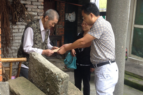彭州市臺(tái)辦為貧困臺(tái)屬送上慰問(wèn)金。