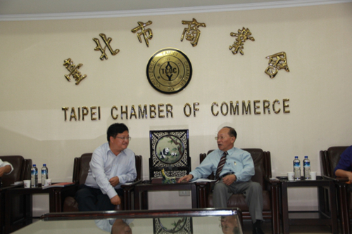 考察團(tuán)一行與臺(tái)北市商業(yè)會(huì)負(fù)責(zé)人座談交流。