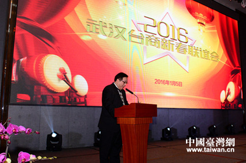 武漢市臺協(xié)會長林志昶致辭。(圖片來源:武漢市臺辦)