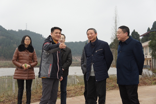 四川省臺(tái)辦主任周敏謙(右二)調(diào)研臺(tái)資企業(yè)百綠盛三生農(nóng)業(yè)公司。