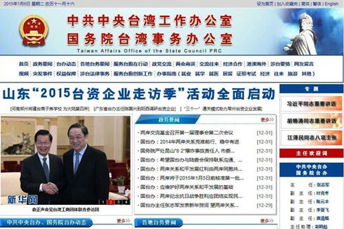 圖:中共中央臺辦、國務院臺辦官網以“本網頭條”報道山東省“2015臺資企業(yè)走訪季”活動