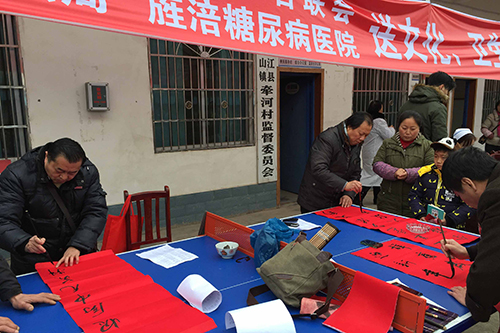 活動(dòng)現(xiàn)場(chǎng)熱鬧紛繁,參與診療咨詢的群眾絡(luò)繹不絕,想要春聯(lián)的村民把書畫家們圍得水泄不通,雖是寒冬臘月,但忙著書寫春聯(lián)的書畫家們的額頭已滲出了汗珠。他們說:“一天的活動(dòng)雖然辛苦,但是能通過自己的才藝為基層群眾送去新春祝福,看到村民們拿著春聯(lián)個(gè)個(gè)滿意的笑容,所有的辛勞付出都是值得的!贝舜巍叭锣l(xiāng)”活動(dòng)共向群眾發(fā)送法治宣傳資料600余冊(cè)、衛(wèi)生健康資料400余份,書寫對(duì)聯(lián)360余幅,開展義診、為群眾送醫(yī)送藥達(dá)330余人次。 (中國臺(tái)灣網(wǎng)、德陽市臺(tái)辦聯(lián)合報(bào)道)