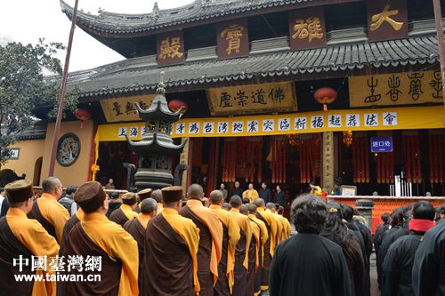 上海玉佛禪寺舉行祈福超薦法會。(上海市臺辦 葛鳳章 攝)