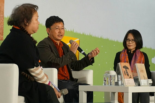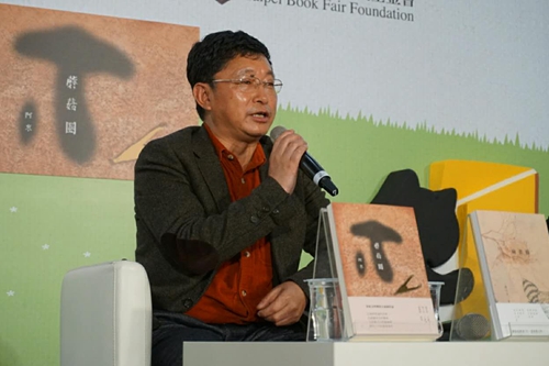 四川省作家協(xié)會主席、知名藏族作家阿來在臺北新書發(fā)布會上致辭。
