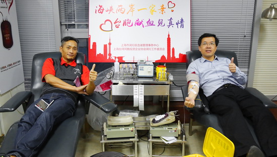 談到為什么參加義務(wù)獻血活動,剛獻完血的臺胞黃學(xué)通一邊按著手臂上的酒精棉球,一邊興奮地說,習(xí)近平在習(xí)馬會上說,兩岸同胞是一家親,打斷骨頭連著筋,我們臺胞、臺商在上海創(chuàng)業(yè)、工作和生活,得到了大陸各級大力支持和幫助,現(xiàn)在兩岸關(guān)系融合度愈來愈高,我們臺胞、臺商義務(wù)獻血,為大陸同胞用血提供方便,讓兩岸臺胞的血融合在一起,那才是一家人那。