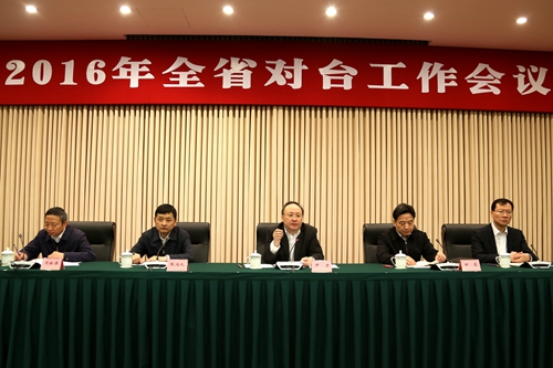 省委副秘書長張為人、省政府副秘書長騰中平,省委對臺工作領(lǐng)導(dǎo)小組成員,各市(州)黨委或政府分管領(lǐng)導(dǎo)和臺辦主任、省級有關(guān)部門負責(zé)同志和臺事機構(gòu)負責(zé)人參加會議。會議隨后召開了全省臺辦主任座談會,省臺辦主任周敏謙通報了2015年全省對臺工作情況,并對2016年工作作具體安排。