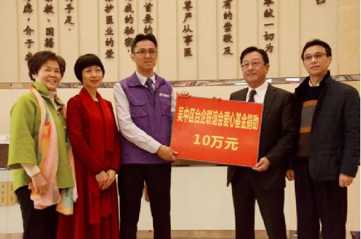 中國臺灣網(wǎng)3月16日蘇州訊 今天上午,蘇州市吳中區(qū)臺企聯(lián)誼會來到臺資明基醫(yī)院,向醫(yī)院臺灣病患捐助10萬元人民幣。蘇州市臺辦副主任沈蓉,吳中區(qū)臺協(xié)會會長謝清福參加了捐助活動。