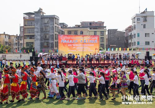 年輕,沒(méi)有距離;年輕,沒(méi)有什么不可以。桂臺(tái)兩地青年學(xué)子初次相見(jiàn),卻格外親切,無(wú)話(huà)不談,老朋友一般。壯校師生身著民族節(jié)日盛裝,與佛光大學(xué)青年師生一起在美麗的校園漫步,一起觀(guān)看民族精品歌舞展演。佛光大學(xué)的青年學(xué)生們還興致勃勃地加入到拋繡球、竹杠舞等活動(dòng)中,與壯校學(xué)生一起體驗(yàn)民族體育競(jìng)技活動(dòng)的魅力。操場(chǎng)上,烈日炎炎,卻擋不住兩地學(xué)生如火的熱情,他們手牽手、肩并肩,和著《我們都是一家人》的歡快樂(lè)曲跳起多耶舞,整個(gè)操場(chǎng)成為歡樂(lè)的海洋。