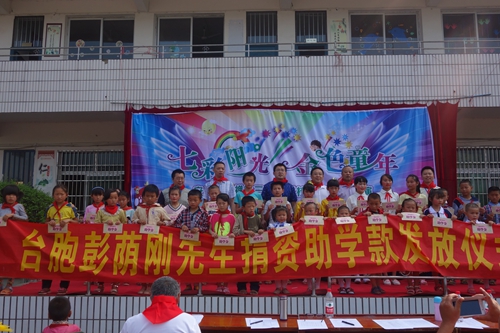眉山市臺辦共計為盤鰲鄉(xiāng)中心小學(xué)、保勝小學(xué)、慈航鎮(zhèn)中心小學(xué)等學(xué)校的50名受助學(xué)生發(fā)放2.5萬元助學(xué)金,勉勵受資助的孩子們牢記彭蔭剛先生及社會各界的關(guān)心的幫助,常懷感恩之心。