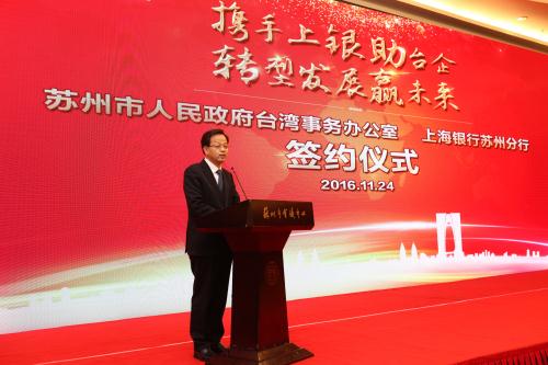 胡友聯(lián)對(duì)此次合作充滿希望,表示將秉承“創(chuàng)新、協(xié)調(diào)、綠色、開(kāi)放、共享”的發(fā)展理念,為銀企合作開(kāi)拓廣闊的空間和前景。他承諾,將進(jìn)一步深化銀政企合作,創(chuàng)新業(yè)務(wù)產(chǎn)品,拓展擔(dān)保方式,突破制約臺(tái)企融資的瓶頸,優(yōu)化臺(tái)資企業(yè)融資環(huán)境;積極支持臺(tái)資企業(yè)上市,進(jìn)一步拓寬直接融資渠道;拓寬臺(tái)資企業(yè)客群,將優(yōu)質(zhì)臺(tái)企列入優(yōu)先支持客戶(hù)名單,不斷加大政策傾斜,積極服務(wù)蘇臺(tái)產(chǎn)業(yè)銜接。為臺(tái)資企業(yè)營(yíng)造更好的環(huán)境,提供更好的服務(wù)。