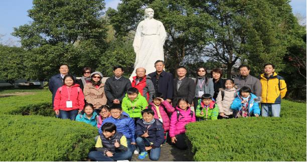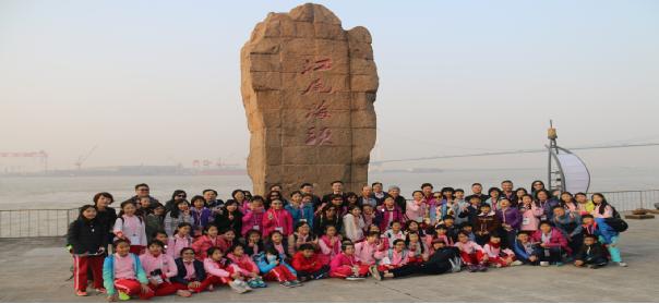 江尾海頭,金橋飛架,參訪首站是位于長江之濱的江陰鵝鼻嘴公園。新北大豐小學(xué)的師生及家長代表們飛躍海峽,結(jié)緣揚子江畔。