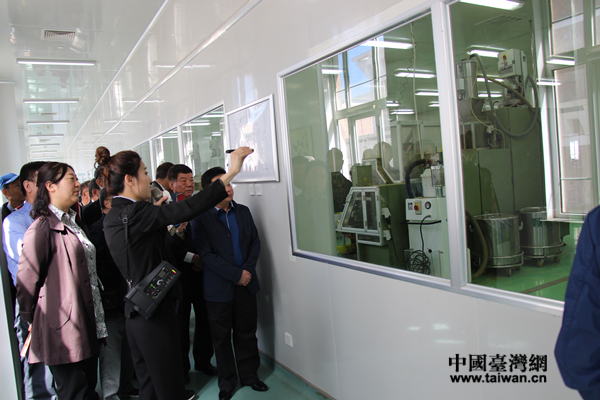 參訪團參觀碧生源產(chǎn)品生產(chǎn)車間。(圖片來源:北京市臺聯(lián))