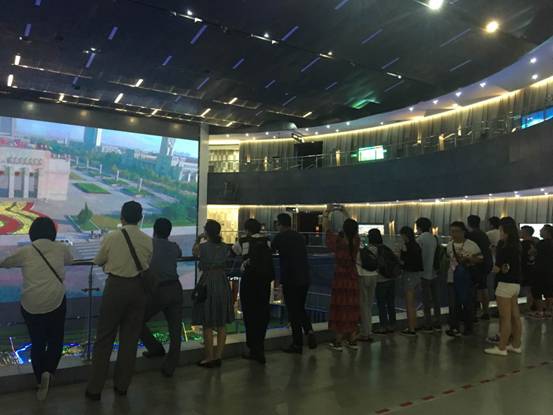 在市展覽館,同學(xué)們通過(guò)館內(nèi)生態(tài)數(shù)碼墻、數(shù)字沙盤(pán)、弧幕影院等現(xiàn)代光電技術(shù)手段,了解了東營(yíng)的城市發(fā)展史,感受到了東營(yíng)的城市魅力。