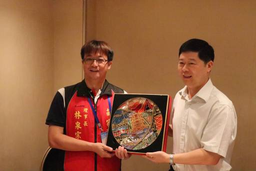 江岸區(qū)委書記王煒(右)接見林泉宗團(tuán)長(zhǎng)