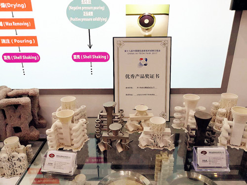 連云港臺(tái)資企業(yè)---連云港源鈺金屬制品公司作為連云港市唯一獲邀參展企業(yè),首次亮相高交會(huì),展位位于最大的1號(hào)館:“信息技術(shù)與產(chǎn)品展 ”主題展館。本屆高交會(huì)上,連云港源鈺金屬制品公司帶來了3D打印技術(shù)在精密鑄造產(chǎn)品中的解決方案——采用3D打印殼模之快速鑄造法、負(fù)壓澆鑄正壓成型技術(shù);其中3D打印殼模產(chǎn)品等更彰顯連云港源鈺金屬制品公司的技術(shù)實(shí)力。期間,吸引了眾多觀眾駐足、交流,紛紛對(duì)公司優(yōu)秀的產(chǎn)品及專業(yè)的技術(shù)介紹給予了高度肯定。會(huì)后,組委會(huì)傳來喜訊:連云港源鈺金屬制品公司高交會(huì)現(xiàn)場展出的“采用3D打印殼模之快速鑄造法”經(jīng)過層層評(píng)選,獲得了由高交會(huì)組委會(huì)頒發(fā)的優(yōu)秀產(chǎn)品獎(jiǎng)。