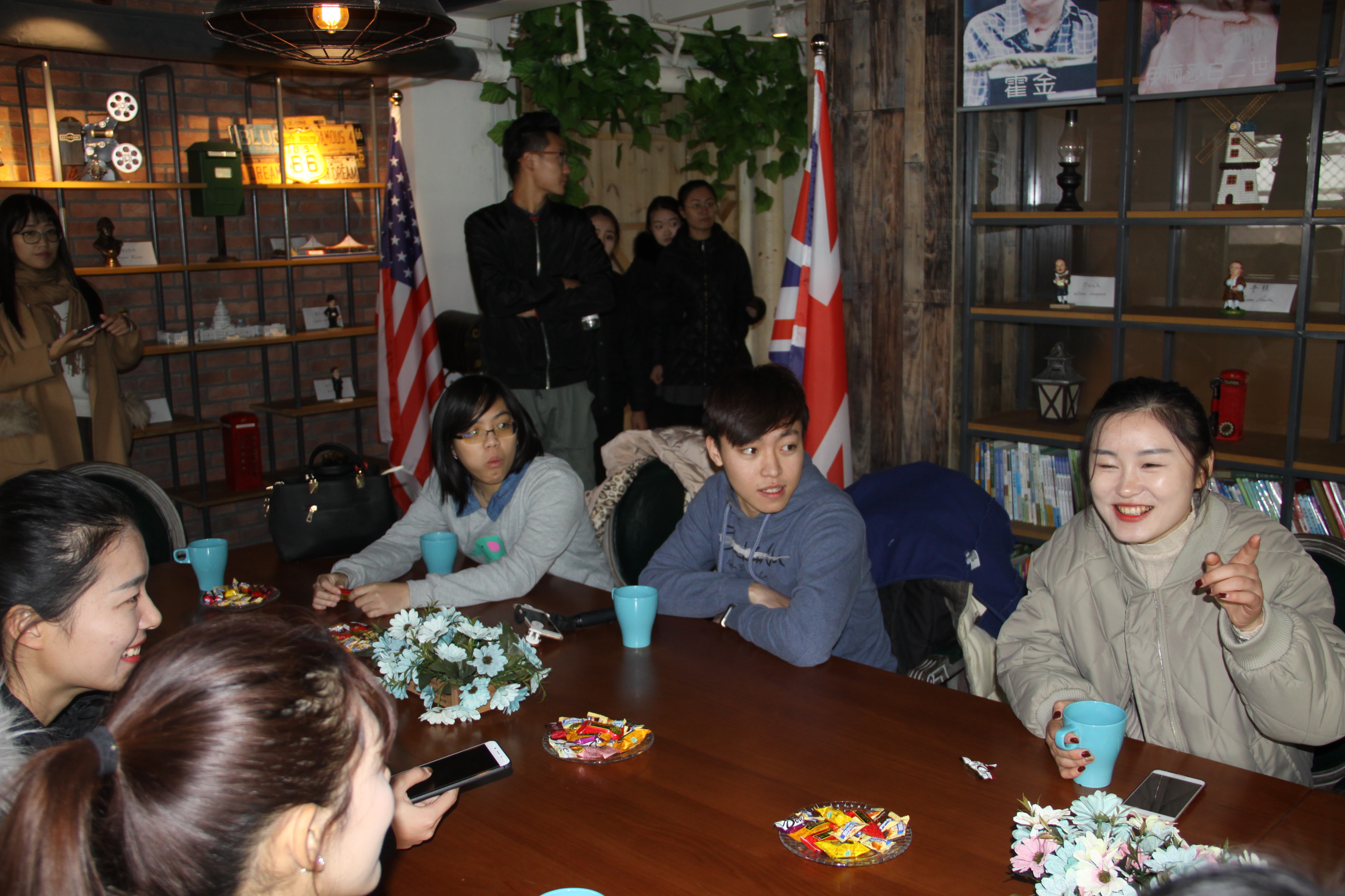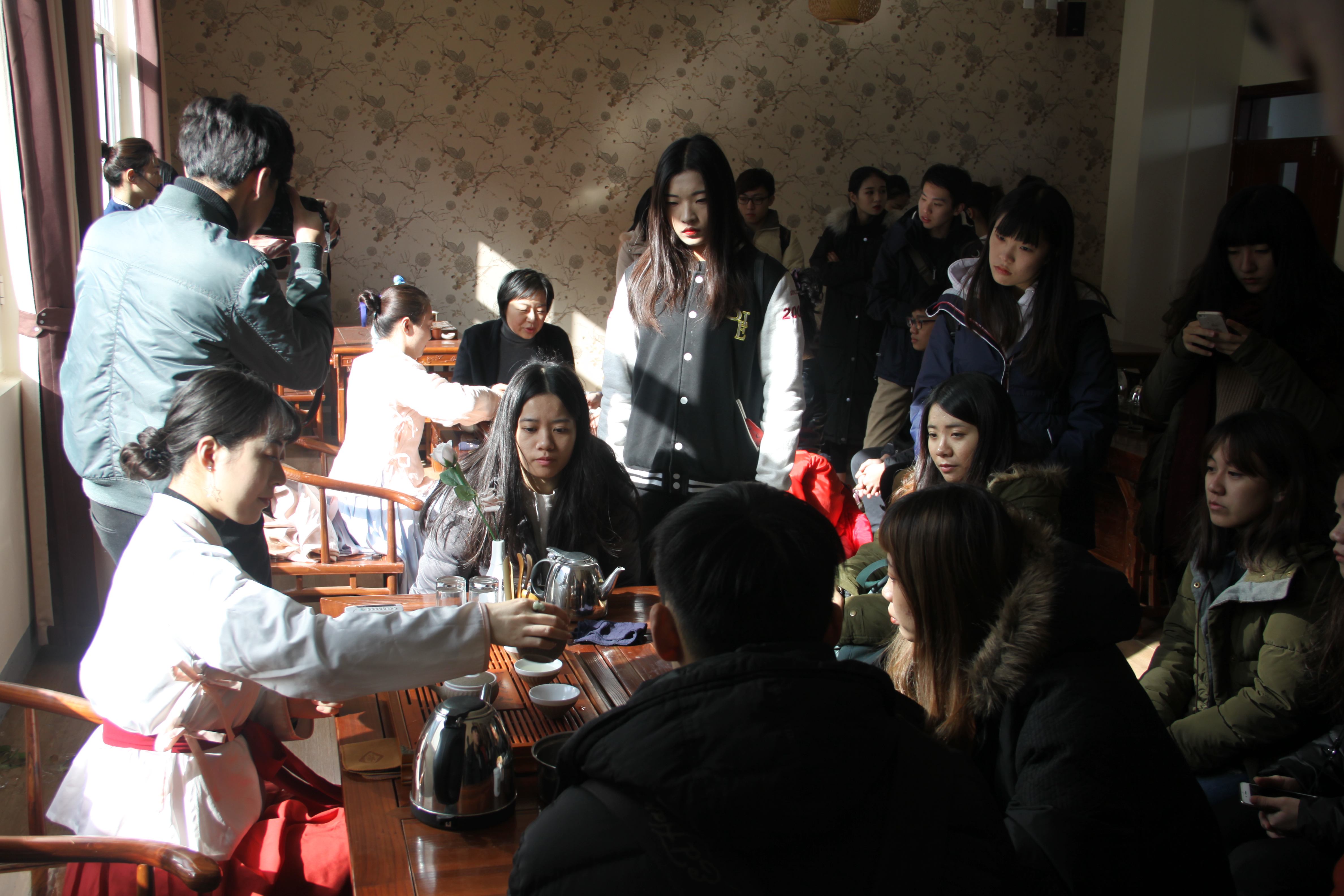在山東外國語職業(yè)學(xué)院,學(xué)院交流中心暨港澳臺辦公室副主任秦敏熱情接待了參訪團(tuán)一行。秦敏副主任向客人介紹了學(xué)院基本情況,陪同客人參觀考察了校園規(guī)劃、外國留學(xué)生公寓、茶藝工作室、民藝工作室、航空模擬艙、世界文化長廊和同聲傳譯實訓(xùn)室。靜雅的校園環(huán)境、便捷的基礎(chǔ)設(shè)施和先進(jìn)的教學(xué)設(shè)備給臺灣的師生們留下了深刻的印象。在學(xué)院世界文化長廊,經(jīng)濟(jì)管理學(xué)院、航空旅游學(xué)院和國際交流學(xué)院的15名學(xué)生與臺灣學(xué)生進(jìn)行了茶敘交談;中午,臺灣師生和山外師生共同到食堂就餐,兩岸青年學(xué)子的歡聲笑語、真誠互動和留戀不舍生動詮釋了“兩岸一家親”理念。
