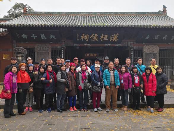 臺灣高雄市小港區(qū)基層代表團(tuán)在張飛廟前合影。(圖片來源:南充市臺辦)