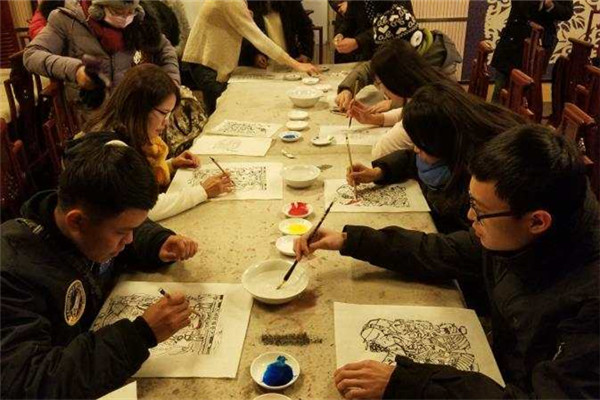 臺灣青年在平遙古城參與木版年畫的制作。(北京臺聯(lián) 供圖)