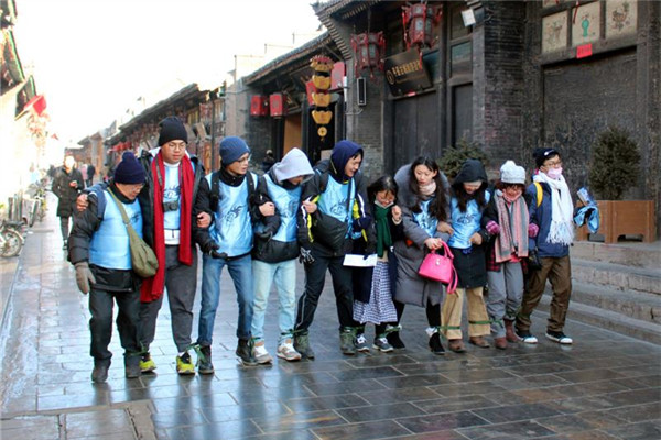 他的團隊成員、北京城市學院的臺籍學生陳嘉儀說,拓展活動的過程可以用“冷、累、跑”三字概括,“冷”即天氣寒冷,“累、跑”則是指要在平遙古城很滑的路面上奔跑!暗鞘斋@很多,”陳嘉儀說:“不僅了解歷史文化,也給了我們很大的激勵,就是做任何事情都不要輕言放棄!