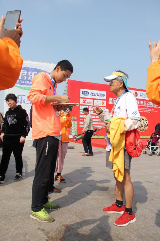 選手劉哲宏說:“馬拉松就是‘路遙知馬力’的一項運動,不是在拼誰跑得快,而是在拼誰能堅持下來!”78歲高齡的跑友林豐盛的信條是“人生七十才開始”。為了挑戰(zhàn)自己的承受力和極限,林豐盛從70歲開始跑全馬,鄭開馬拉松是他的第76場比賽。在跑至終點時收獲了現(xiàn)場觀眾熱烈的掌聲,他激動地說:“我終于跑完了,又一次堅持了下來,我很開心!”