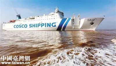 圖為臺胞搭乘的“中遠(yuǎn)之星”輪船駛?cè)肱_州大麥嶼港。(圖片來源:臺州市臺辦)