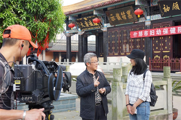 在德陽拍攝的最后一站,攝制組來到了綿竹諸葛雙忠祠,作為三國歷史文化遺跡,這里也是臺灣民眾尤為感興趣的文化點位。臺灣記者們詳細了解了發(fā)生在綿竹關(guān)的三國歷史上最后一戰(zhàn)、蜀漢政權(quán)終結(jié)之戰(zhàn),諸葛亮、諸葛瞻、諸葛尚“諸葛一門,三代忠貞”的千秋佳話,同時也了解了當(dāng)?shù)貙χ倚⒕窈蛡鹘y(tǒng)美德的文化傳承。