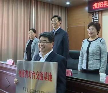 省臺(tái)辦交流處工作人員宣讀了河南省臺(tái)辦《關(guān)于同意周口市淮陽縣太昊伏羲陵為河南省對(duì)臺(tái)交流基地的批復(fù)》,省臺(tái)辦副主任杜春景向淮陽縣太昊陵管理處授牌。