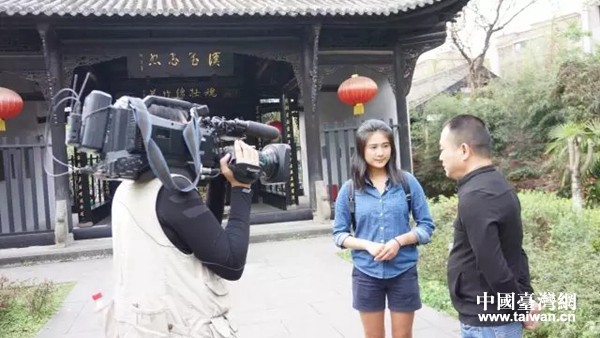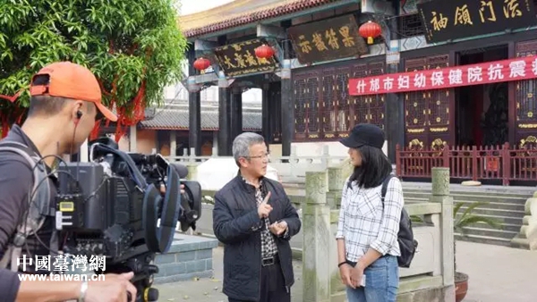 在綿竹諸葛雙忠祠采訪。(圖片來源:四川省臺(tái)辦)