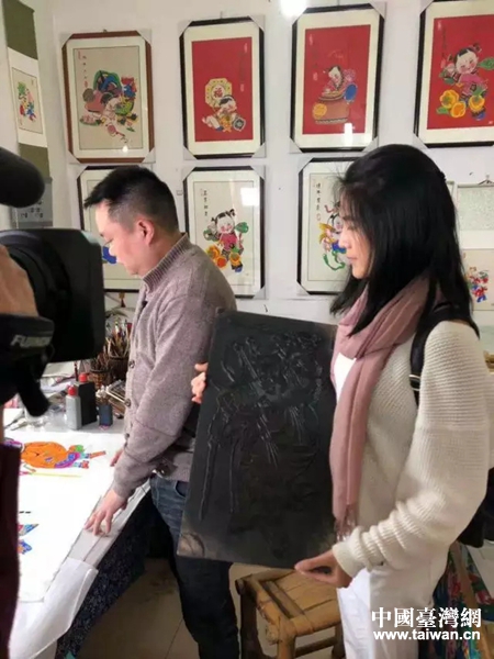 陳剛老師講解綿竹年畫制作過程。(圖片來源:四川省臺(tái)辦)