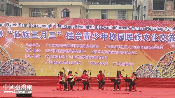 中國臺灣網(wǎng)4月27日南寧訊 日前,臺灣佛光大學(xué)、南華大學(xué)等9個參訪團200多名臺灣同胞走進廣西民族中專(壯校、民族高中)校園,與學(xué)校師生開展桂臺青少年校園民族文化交流活動,活動別開生面、熱鬧非凡,吸引了不少周邊群眾參與。