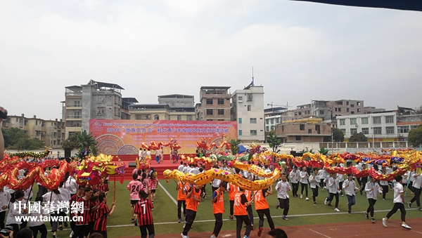 學(xué)生表演《龍舞呈祥》。(圖片來源:南寧市臺辦)