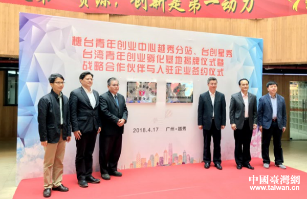 中國臺灣網5月3日廣州訊 日前,在廣州市人民政府臺灣事務辦公室指導下,廣州市穗臺經濟文化交流中心、越秀區(qū)臺辦、越秀區(qū)科工信局及廣州黃花崗高新技術創(chuàng)業(yè)服務中心等單位聯(lián)合主辦的“穗臺青年創(chuàng)業(yè)中心越秀分站、臺創(chuàng)星秀臺灣青年創(chuàng)業(yè)孵化基地揭牌儀式暨戰(zhàn)略合作伙伴與入駐簽約儀式”在越秀區(qū)黃花崗科技園廣州創(chuàng)業(yè)大街舉行。廣州市臺辦、越秀區(qū)臺辦、越秀區(qū)科工信局等部門的領導及穗臺兩地創(chuàng)業(yè)團隊、青年朋友約50人參加了活動。