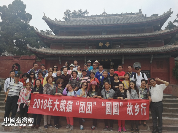 臺灣少數(shù)民族參訪團(tuán)在綿陽梓潼縣“四川省海峽兩岸交流基地”七曲山大廟合影留念。(圖片來源:綿陽市臺辦)