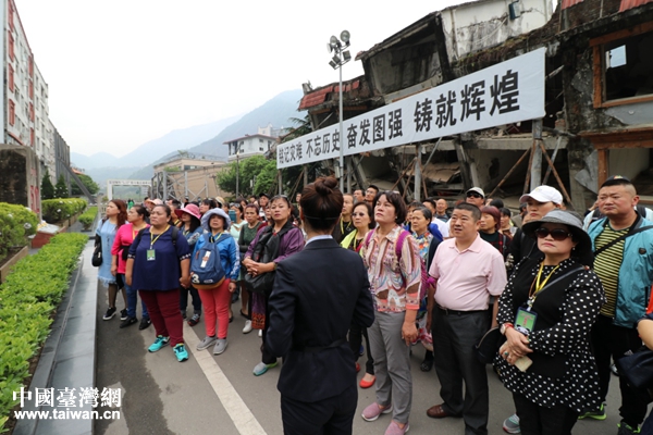 參訪“海峽兩岸交流基地”北川老縣城地震遺址。(圖片來源:綿陽市臺辦)